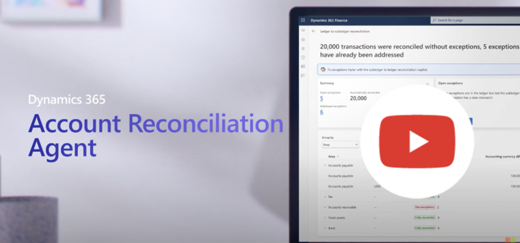 The Account Reconciliation Agent, for example, doesn’t just match transactions—it learns your organization’s reconciliation patterns and handles increasingly complex scenarios automatically. Over time, it reduces manual reconciliation workload by up to 80% while improving accuracy. Watch this minute long video on the Account Reconciliation Agent from Microsoft.